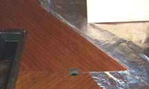 The photo on the right shows a closeup of the damage to the veneer. Two sheets of
